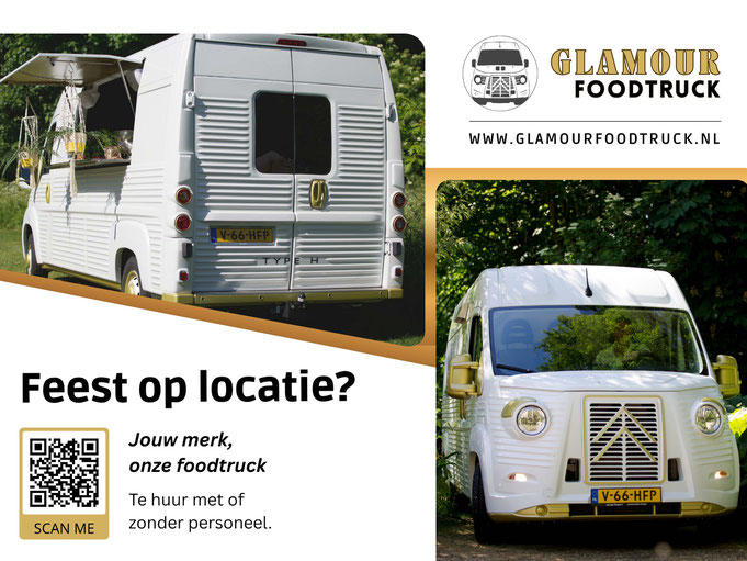 De Glamour Foodtruck is een stijlvolle blikvanger voor bruiloften, bedrijfsfeesten, privé-events of creatieve promoties. De truck is te huur met of zonder personeel én volledig te personaliseren met jouw eigen branding. Kortom: retro aan de buitenkant, futureproof van binnen. Gegarandeerd de showstopper op jouw feest.